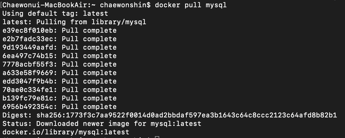 4. 컨테이너 접속을 위한 명령어 실행 후 mysql에 접속한다.