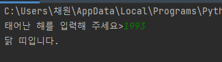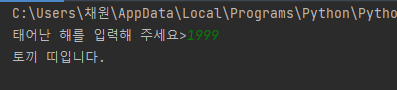 위와 같이 결과창에 "태어난 해를 입력해 주세요>____ 가 표시되는 것을 확인할 수 있다.