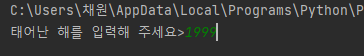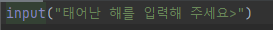 input("태어난 해를 입력해주세요>") 를 입력한 후 실행하면