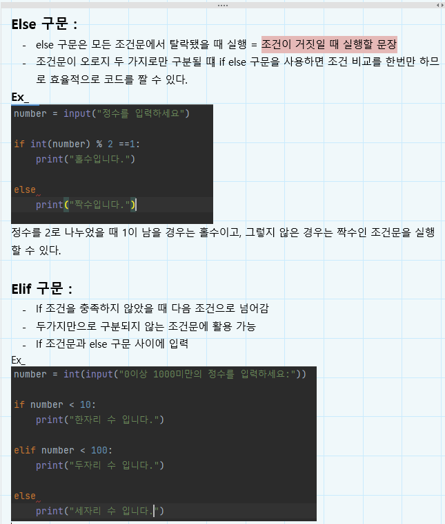 - elif구문은 if 조건문과 else 구문 사이에 입력한다.