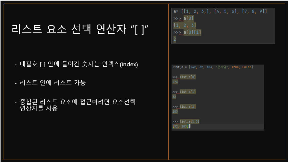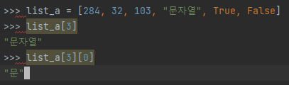 2)_ 리스트 접근 연산자를 이중으로 사용할 수 있다.