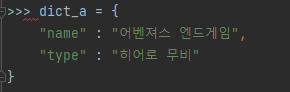 또한, 딕셔너리를 사용할 때는 { } 가 아닌 [ ] 를 사용해야한다는 것을 유의해야 한다.