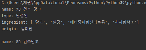 다음과 같은 딕셔너리 값을 출력하면,