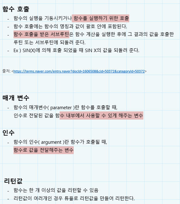 이번주는 함수를 만드는 방법에 대한 공부를 하는데, 그전에 관련 용어를 정리해보았다.